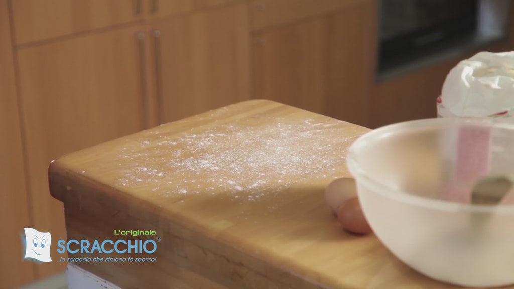 Prima o durante la pulizia è sufficiente sciacquare Scracchio solo con acqua corrente.